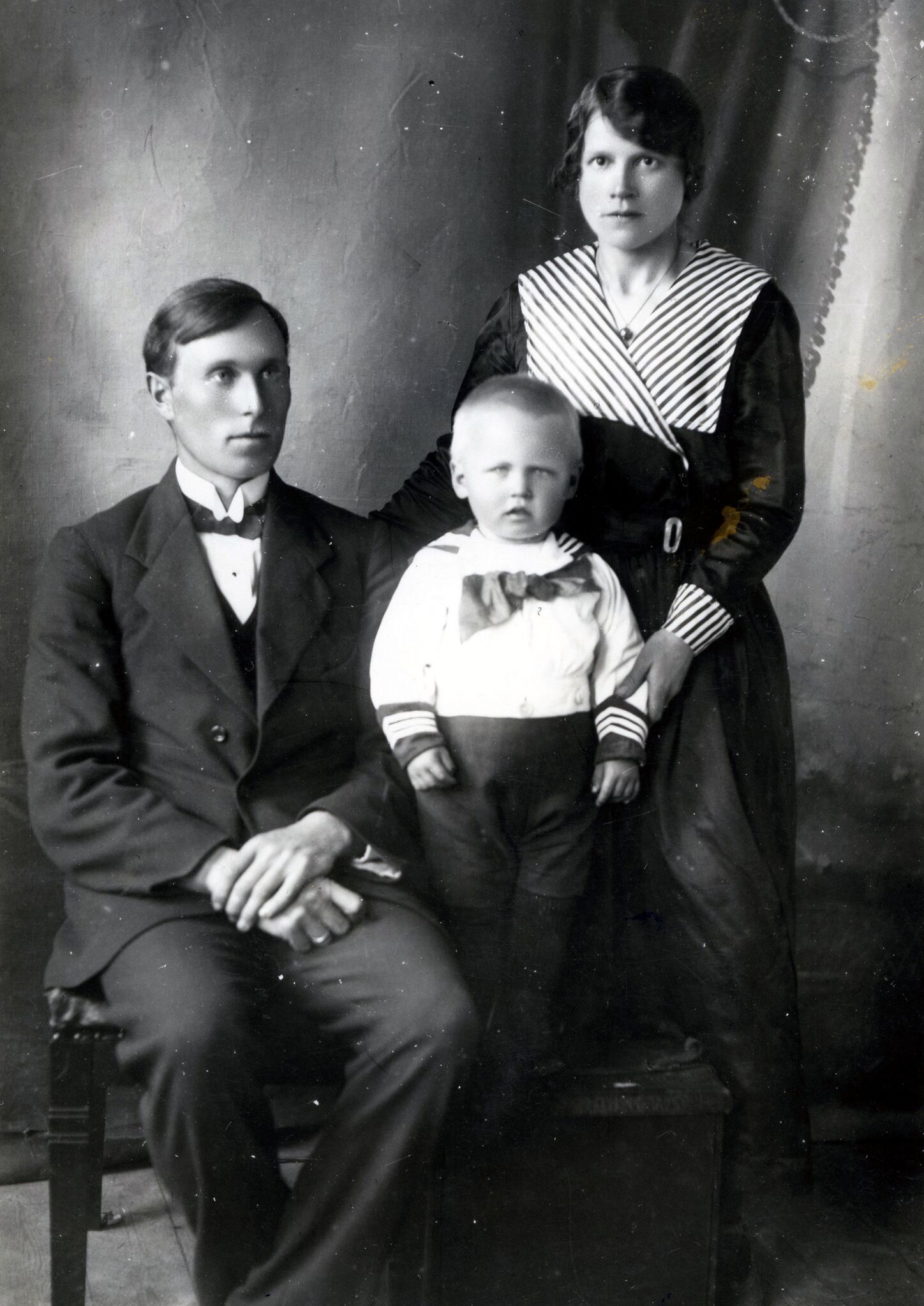 Sigurjón Högnason og k.h Kristín Þórðardóttir frá Garði síðar í Borg v/ Heimagötu og sonur þeirra fr.v. Garðar síðar rafveitustjór. árið 1920