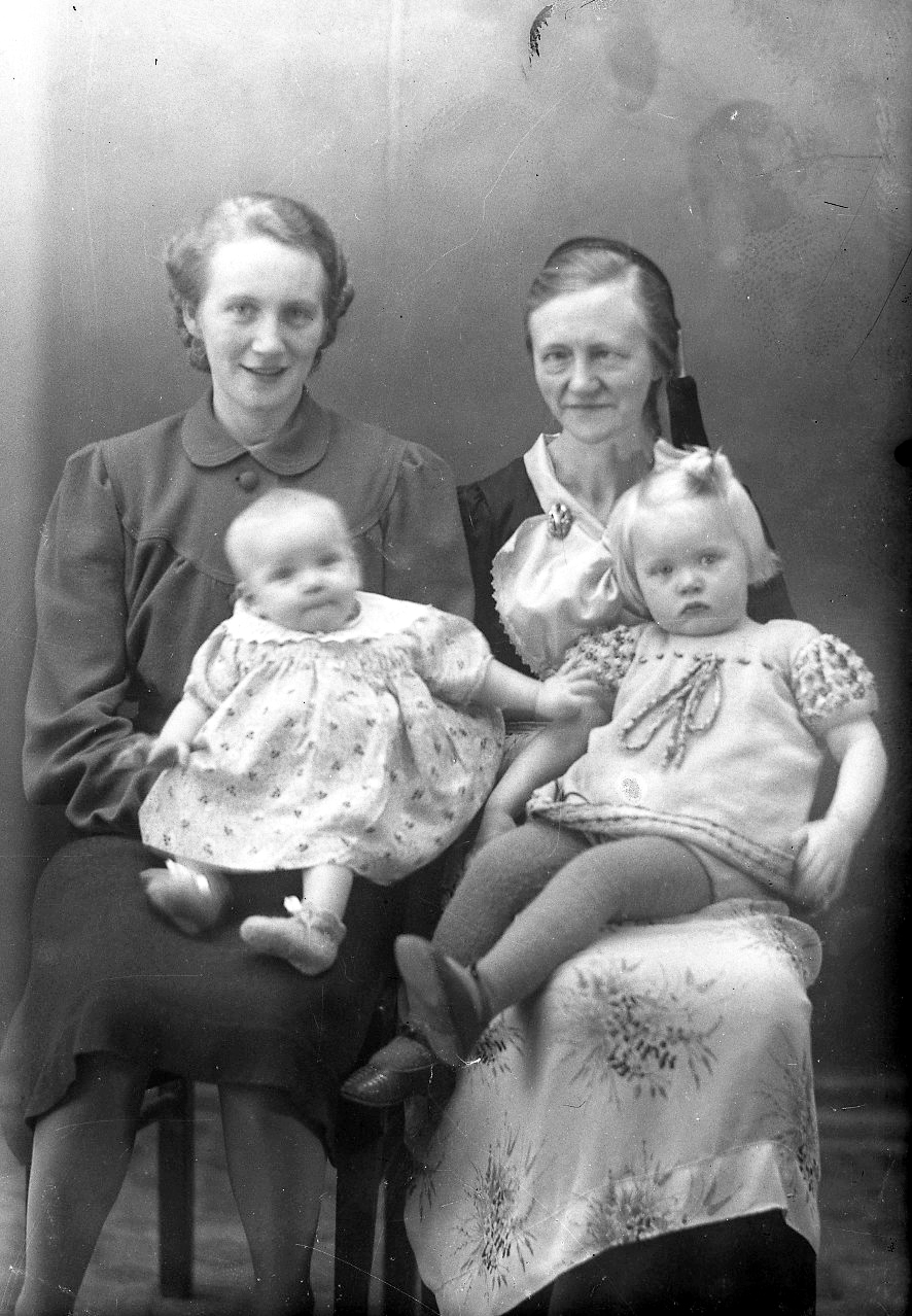Frá v. Sigurást Guðmundsdóttir og móðir hennar Jónína frá Háeyri v/ Vesturveg 11a og dætur Sigurástu frá v. Herdís og Edda