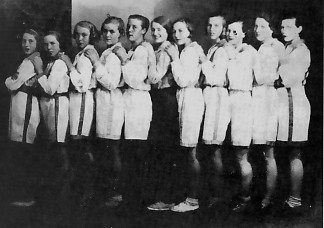Frá vinstri: 1. (Vantar nafn) , 2. Svanhvít Friðriksdóttir, 3. Sigrún Ólafsdóttir, 4. Sigríður Gísladóttir, 5, Bergþóra Þórðardóttir, 6. Alda Jónsdóttir, 7. Geirlaug Jónsdóttir, 8. Marta Böðvarsdóttir, 9. Jóna Ólafsdóttir, 10. Halldóra Helgadóttir.