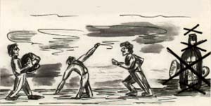 Stundum lét Kohl skipta liðinu og sveitirnar leggja til orustu, hverja við aðra, við klettaborgir og hóla. Bjó varnarliðið sér þar vígi og víggirti með tunnum og sandpokum, en sóknarliðið sótti að af miklum krafti. Hófst þá áköf skothríð, högl að vísu ekki höfð í byssunum, heldur aðeins púður. Reyndi sóknarliðið að hrekja hina úr víginu, og kom þá oft til handalögmála. Þá gat verið ráðlegt fyrir varnarliðið að kveikja í tjörutunnum, sem hlaðið var fyrir framan til þess að bægja hinum frá um stund. Þegar lítill flokkur var umkringdur af stærri flokki, skyldi sá minni þegar gefast upp, en ekki etja kappi við hinn, þegar fyrirsjáanlegt var, að ekki kæmi að gagni.