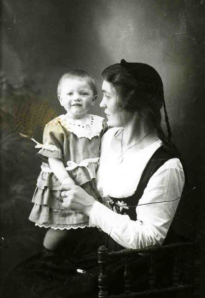 Elín Halldórsdóttir og dóttir hennar Björg Ágústsdóttir á Landagötu.