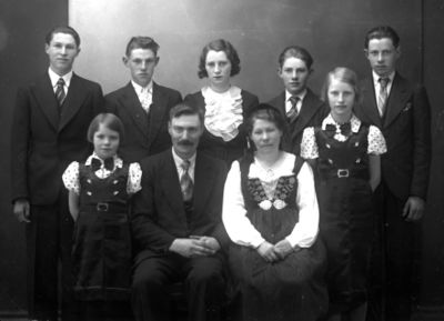 frá v. í aftari röð: Sigurður Jónsson, Stefán Jónsson, Helga Jónsdóttir, Sigurjón Jónsson og [[Gísli Jónsson (Engey)|Gísli Jónsson sem fórst með m/b Ófeigi 1942.