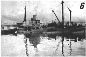 7. Friðarhöfnin. Íslensk og færeysk skip, vel merkt, því myndin er tekin í síðari heimsstyrjöld.