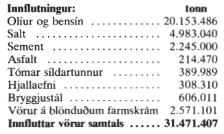 Farið er eftir reikingum Hafnarsjóðs vegna vörugjalda 1980. Vörur sem fluttar voru með Herjólfi eru ekki í þessum tölum.