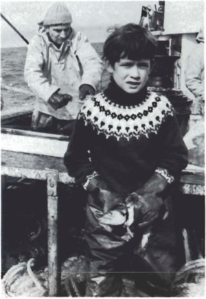 Strákurinn fékk að fara á sjó. Hann stóð sig vel við sjómennskuna