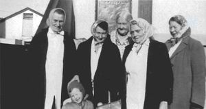 Þessi skemmtilega mynd er tekin í mars 1962 og sýnir nokkrar þekktar dugnaðarkonur, sem eru að fara til vinnu sinnar, þær eru, taldar frá vinstri: Matthildur á Grímstöðum, Sigurborg Kristjánsdóttir Hvanneyri, Guðbjörg Guðmundsdóttir Hvanneyri, Þórunn Friðriksdóttir Birtingarholti og Elínborg Pétursdóttir Heiðarbrún.