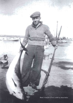 [[Mynd:Binni í Gröf að ná í soðið Sdbl. 1999.jpg|miðja|thumb|Binni í Gröf að ná í soðið og skaut hnísu.]] | [[Mynd:Binni í Gröf að ná í soðið Sdbl. 1999.jpg|miðja|thumb|Binni í Gröf að ná í soðið og skaut hnísu.]] | ||