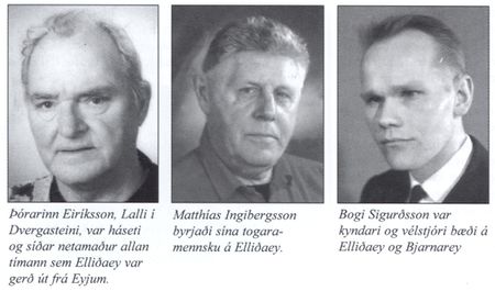 skipverjum Elliðaeyjar VE en þá voru liðin 50 ár frá komu skipsins. Þeir riljuðu upp veru sína um borð, skipsfélaga og samferðarmenn og kepptust við að mæra skipið sem hefði verið listaskip og aðbúnaður allur alveg fyrsta klassa. Þórarinn Eiríksson hafði verið lengst allra um borð. Kvaðst hann hafa orðið bæði hreykinn og upp með sér þegar hann var ráðinn og hafi hann grátið þegar Elliðaey VE var seld héðan.