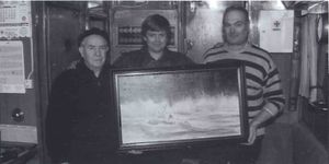 [[Mynd:Óli Willum Gústi Sdbl. 1991.jpg|miðja|thumb|T.f.v: 'oli S. Bernharðsson, vélstjóri. Willum Andersen, hafnarvörður. Willum og Gústi.]] | |||