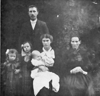 Dætur þeirra hjóna, sem með þeim eru á myndinni, taldar frá vinstri: Steinunn, Jónína og Margrét. Fjórða dóttir þeirra hjóna, Sigríður, mun ekki hafa verið fædd, þegar myndin var tekin.
