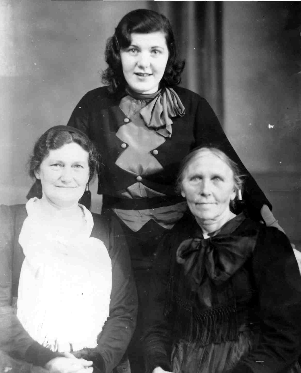 Fyrir aftan Eygló Stefánsdóttir, frá v. Margrét Jónsdóttir og Guðfinna í Skuld.