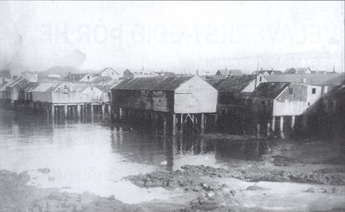 Gömlu pallarnir, þar sem voru aðgerðar- og veiðarfærahús Vestmannaeyjabáta á fyrri hluta 20. aldar. Húsin stóðu á steinstöplum norðan við Strandveginn og voru venjulega kallaðar krær. Þær stóðu þar sem stórhýsi Fiskiðjunnar og Ísfélags Vestmannaeyja frá siðustu öld eru í dag. Á flóði flæddi undir pallana og skolaði þá burtu slógi og öðru sem ekki var nýtt og kastað var niður um slóggat i króargólfinu. Áður en sjóveita kom um 1940 jusu menn upp sjó frá þessu gati og notuðu til þvotta. Ekki myndi þetta uppfylla kröfur um hreinlæti í dag af því að ekki var það óalgengt að fólk gengi örna sinna undir pöllum. Á fjörunni þótti mér, ungum strákpeyja, þetta vera draugaheimur! -GÁE