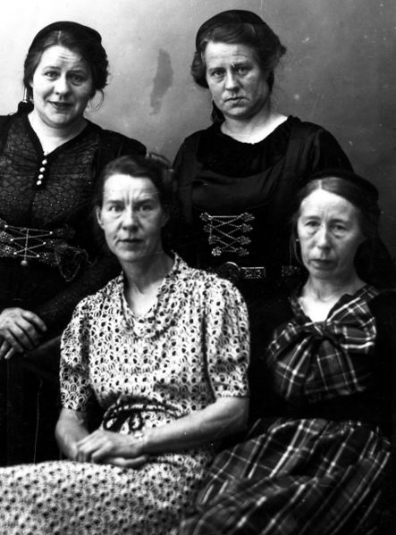 Efst til vinstri eru tvíburarnir Ögmundína Helga (Agga) bjó í Reykjavík, þá Ólafía Sigríður, (Óla) frá Borg í Njarðvík Sitjandi eru Sigurbjörg (Silla) frá Njarðvík, Njarðvíkum og Kristín (Stína) Görðum Vestmannaeyjum. Ögmundsdætur.