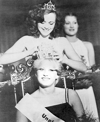 Hér birtir svo Blik mynd af annarri vestmannaeyskri blómarós, sem var kosin fegurðardrottning Íslands á s.l. ári. Hún heitir Kristín Bernharðsdóttir. Hún er dóttir hjónanna Bernharðs Ingimundarsonar skipstjóra í Eyjum og konu hans frú Fjólu Sigurðardóttur frá Hafranesi við Fáskrúðsfjörð. Kristín Bernharðsdóttir er fædd 19. júlí 1959. - Hér krýnir hin fyrri fegurðardrottning, H.B.J., fegurðardrottningu Íslands 1979. Blik árnar þeim báðum allra heilla.