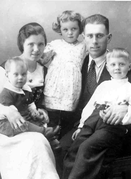 Guðsteinn Þorbjörnsson, kona hans Margrét Guðmundsdóttir, sitjandi hjá henni er Birgir Guðsteinsson, í miðju er Sóley Guðsteinsdóttir og svo er Reynir Guðsteinsson á Vallargötu?