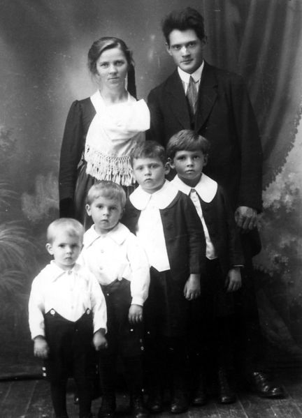 Magnús Helgason, kona hans og synir þeirra, faðir Magnúsar símstöðvarstjóra og bæjarstjóra.