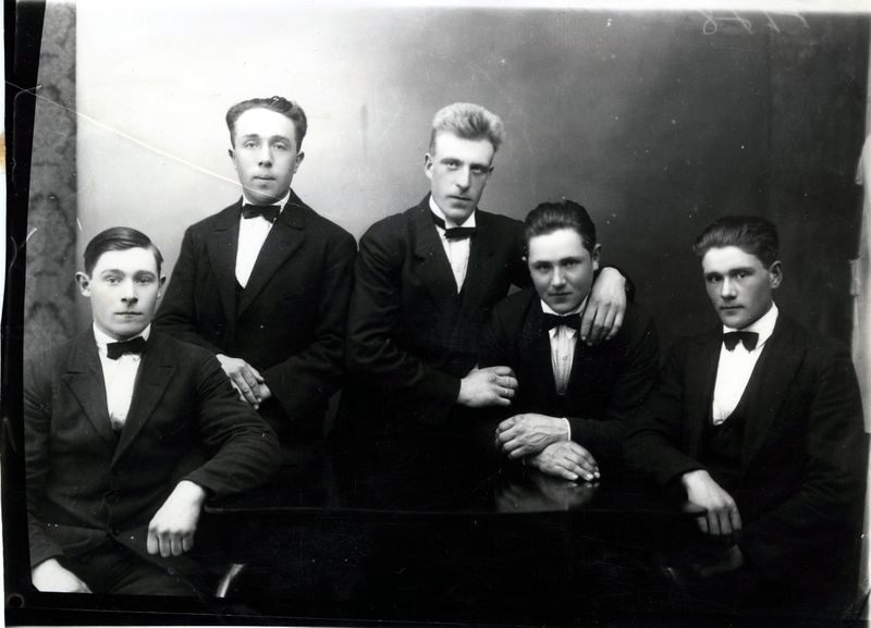 Frá v. Stefán Guðjónsson frá Raufarfelli undir Austur-Eyjafjöllum, bjó í Hólatungu v/ Hólagötu 7 Vestmannaeyjum, Óskar Guðnason frá Hólakoti Eyjafjöllum, Gissur Gissurason frá Drangshlíð Eyjafjöllum, Sigfús Sveinsson frá Selkoti Eyjafjöllum, bjó á Kirkjubæjarbraut 8.Ve. og Gísli Stefánsson frá Rauðafelli Eyjafjöllum. Apríl.1927